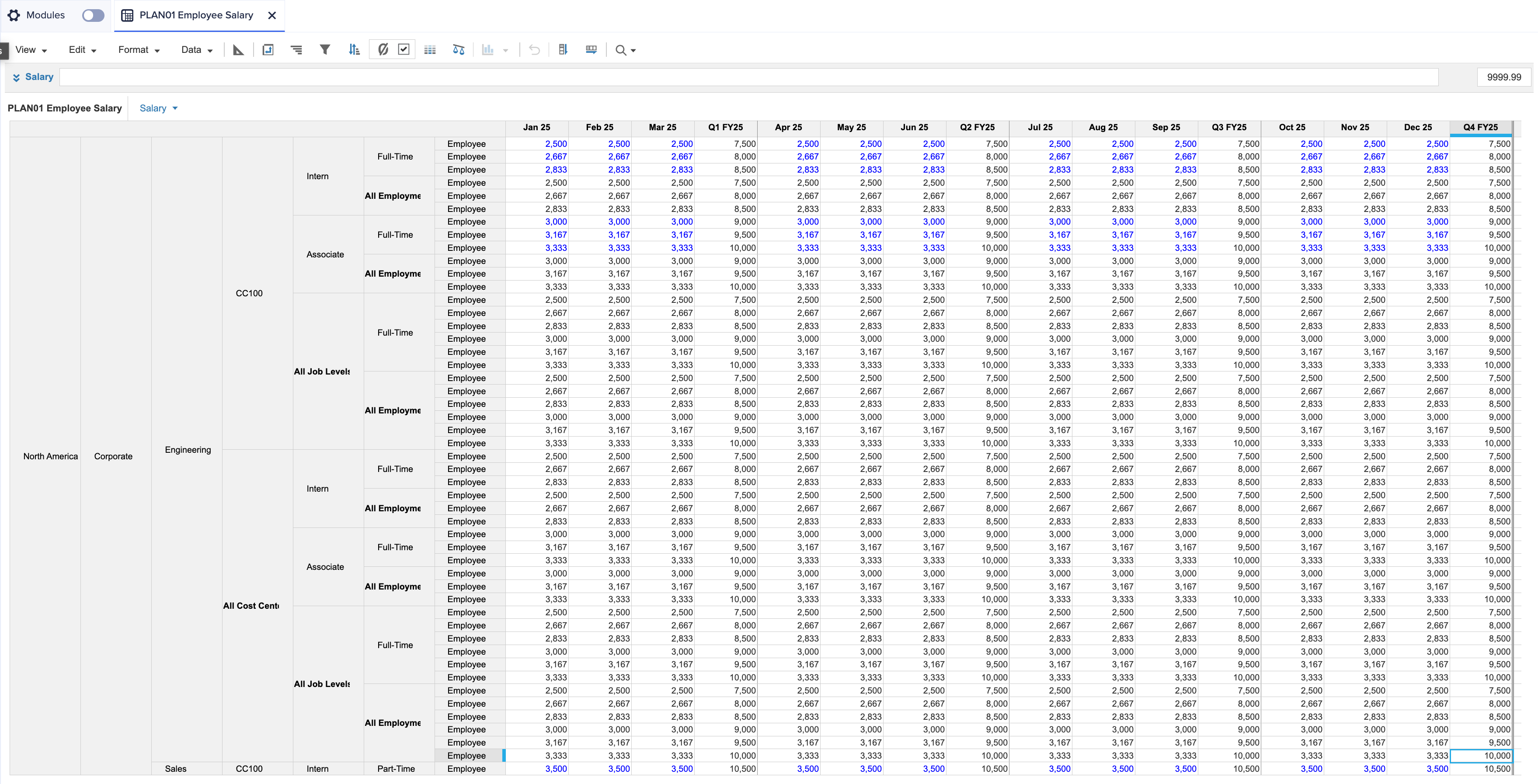 We've increased the number of dimensions that can be nested on a row or column axis of any grid across both the modeling and user experiences in Polaris. Page builders and end users can now use the pivot panel to nest up to eight dimensions on an axis. This enhancement enables users to make use of the full power of Polaris and plan at scale at any level of dimensionality, for example, planning across multiple dimensions, such as employee salary by job role, location, job level, business unit, all in a single grid view.