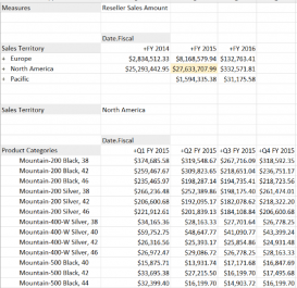 - Select Product members on rows, for example, Lowest Descendants of Mountain Bikes).