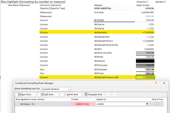 - First, copy the existing conditional format and add rename the copy and add Down 10% to the name in the XLCubedFormat sheet.