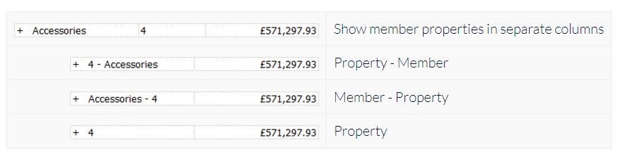 | Property display style | If properties aren't in separate columns, control how the member caption and property are displayed in the cell. |