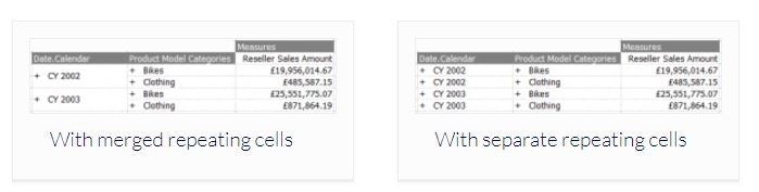 | Merge repeating cells | When crossjoining, merge the repeated cells for the outer hierarchies: |