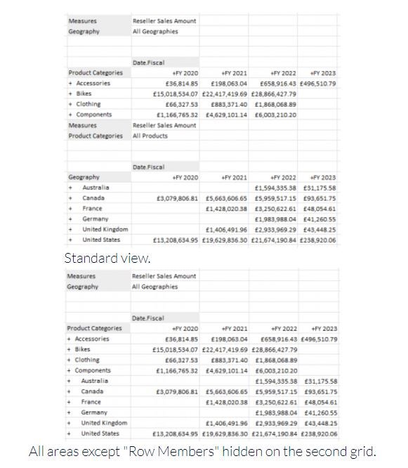 | Indent members when drilling | The indentation of the members in a Grid reflects what level they are on. The size of the indentation can also be adjusted. |