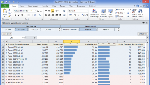 Configure slicers with the Add Slicer and Edit Layout buttons.