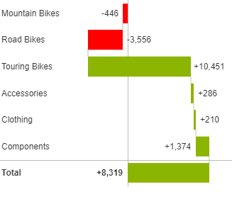 Delta waterfalls display total variance rather than total values.