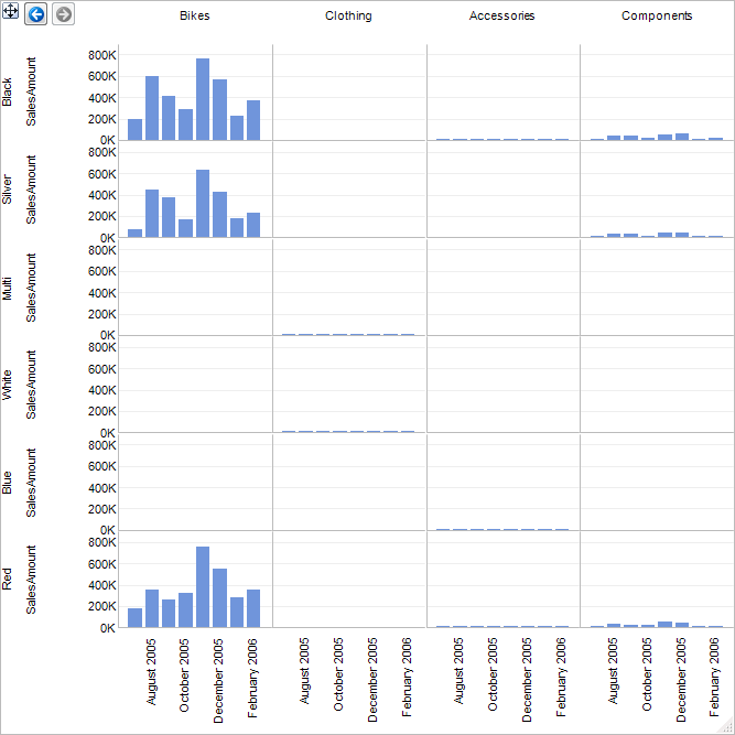 These small multiple charts are identical to the Analysis Services-based charts except for a few differences: