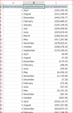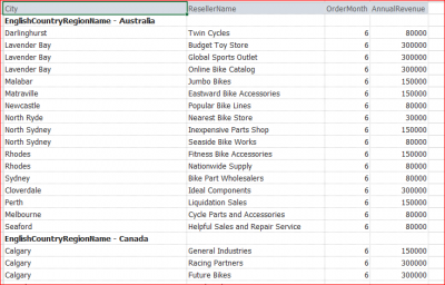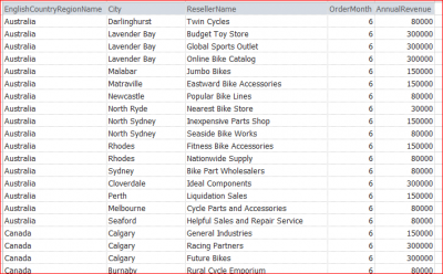 The result is as follows (EnglishCountryRegionName column has been configured to highlight in bold, using the standard formatting sheet).