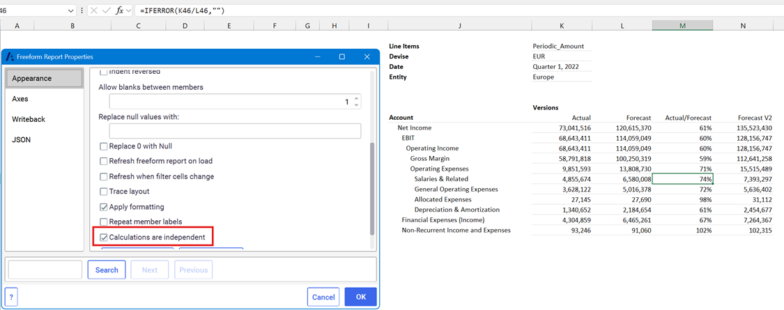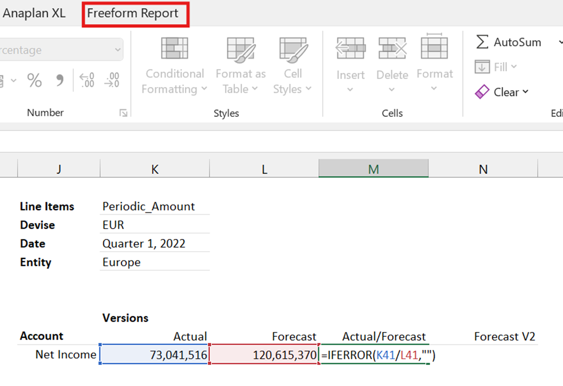 Once this property is enabled, you can override Excel formulas in the freeform report on a cell-by-cell basis.