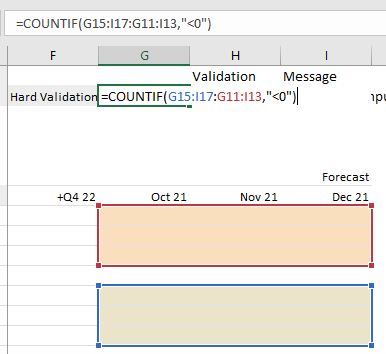 In the example below, cascading Excel formulas are used to build a logic preventing the user from entering negative values for revenue accounts: