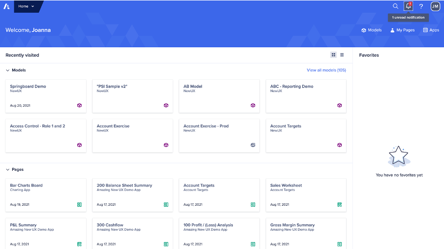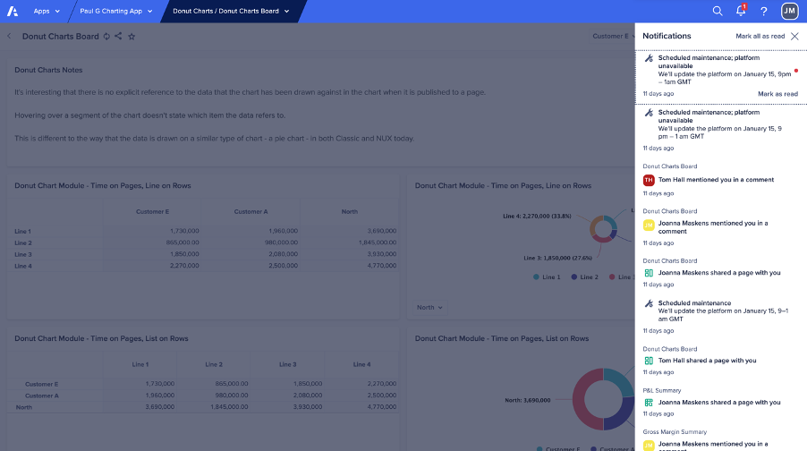 Anyone logging into the Anaplan platform will now see a small notification icon in the bell on the top right of their screen. All users will receive this notification seven days in advance of any planned downtime maintenance window.