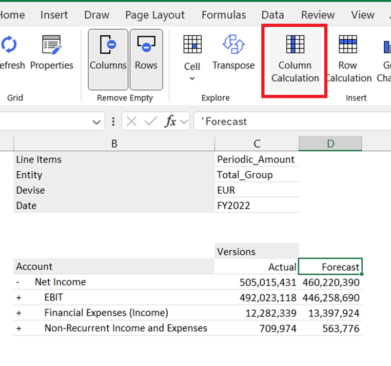 Native Excel formulas in grids