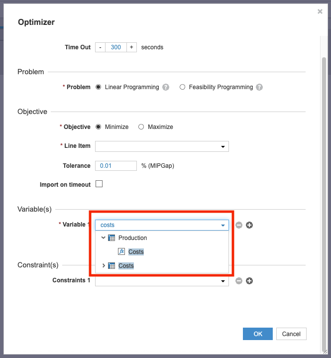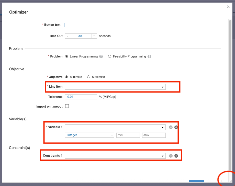 - Display size for objective, variables, and constraints line items: We've increased the size of the model window and dropdowns, and enabled window resizing.