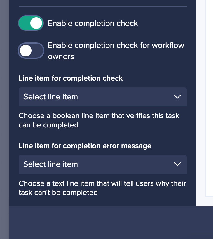 You can now apply workflow completion rules to Workflow owners, as well as other users. Previously, users with the Workflow owner role could bypass completion rules, which may leave tasks inaccurately completed or incomplete. Switch on this setting to ensure that Workflow owners must also follow the completion rules set for the workflow.
