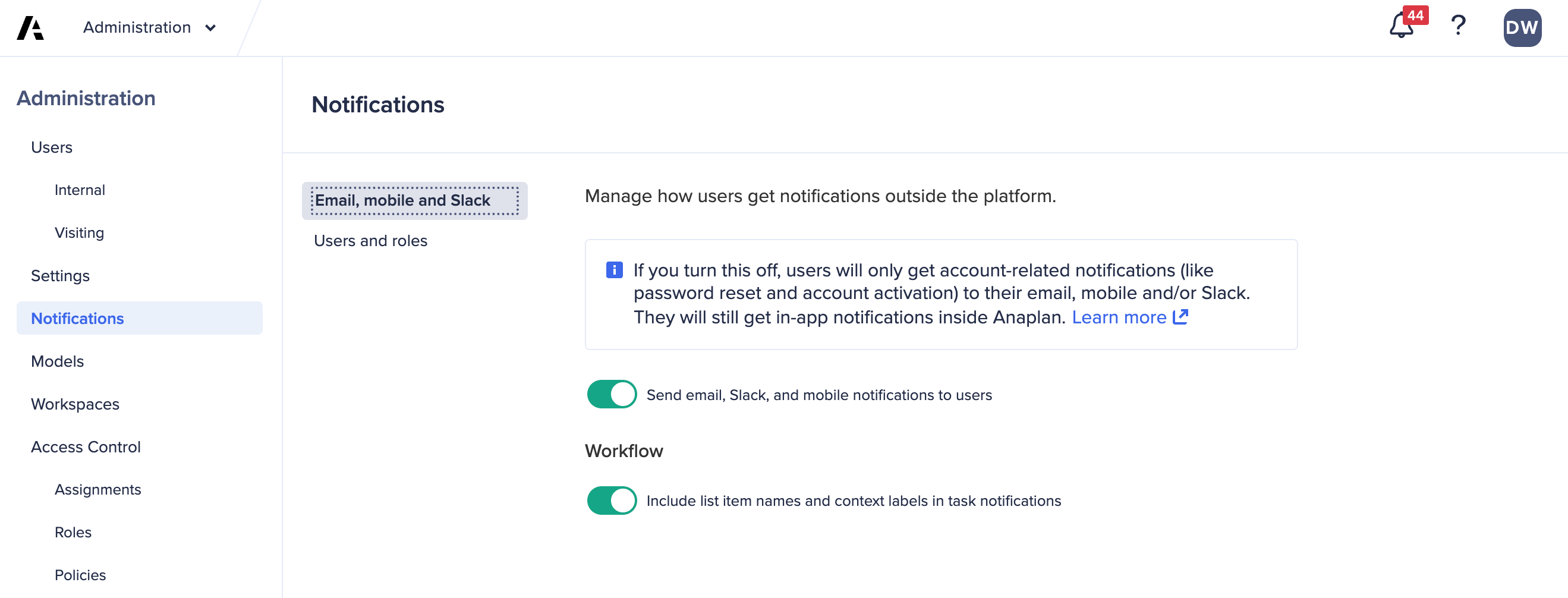 You can now see more information about workflow tasks and approvals in notification emails with the inclusion of list context labels. For example, if your approval relates to "Pizza" sales in "New York", then these labels will be added into the body of the email, making it clear which slice of data the approval relates to. To protect sensitive model data, tenant administrators can turn this setting on and off from Administration > Notifications.