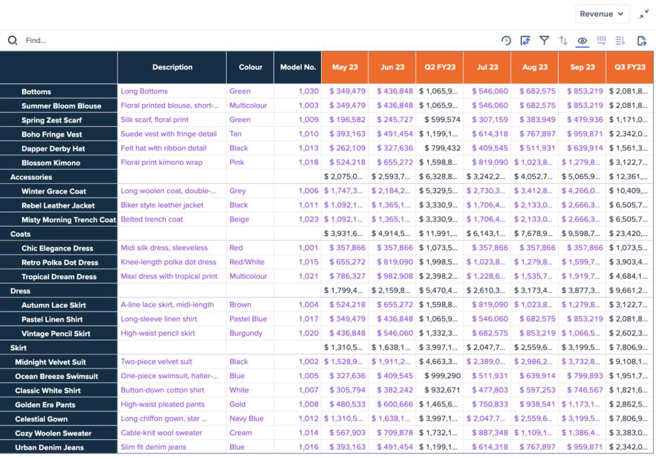 This feature enables planners and model builders to bring data from multiple modules into a single, unified grid. You can: