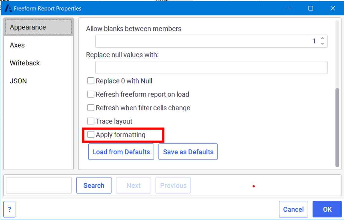 • Enable you to disable all formatting from the Freeform properties window  This is useful when using writeback in On request mode.