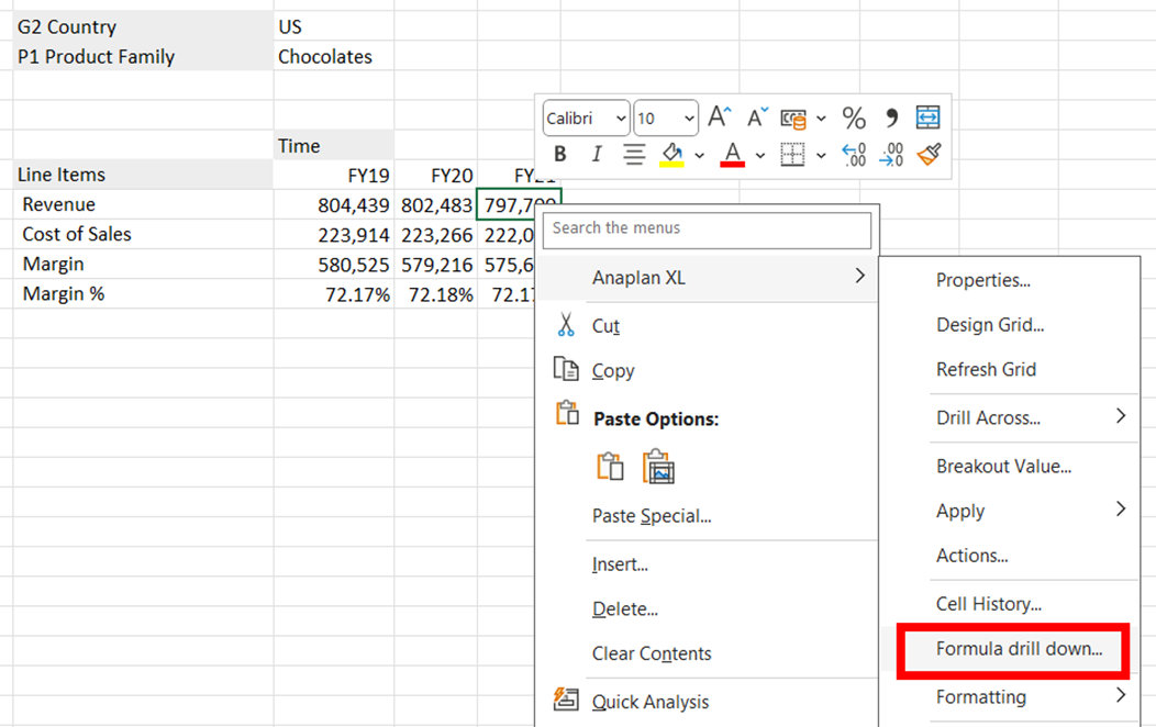 - Select a grid cell, then select Formula Drill Down... from the right-click menu.