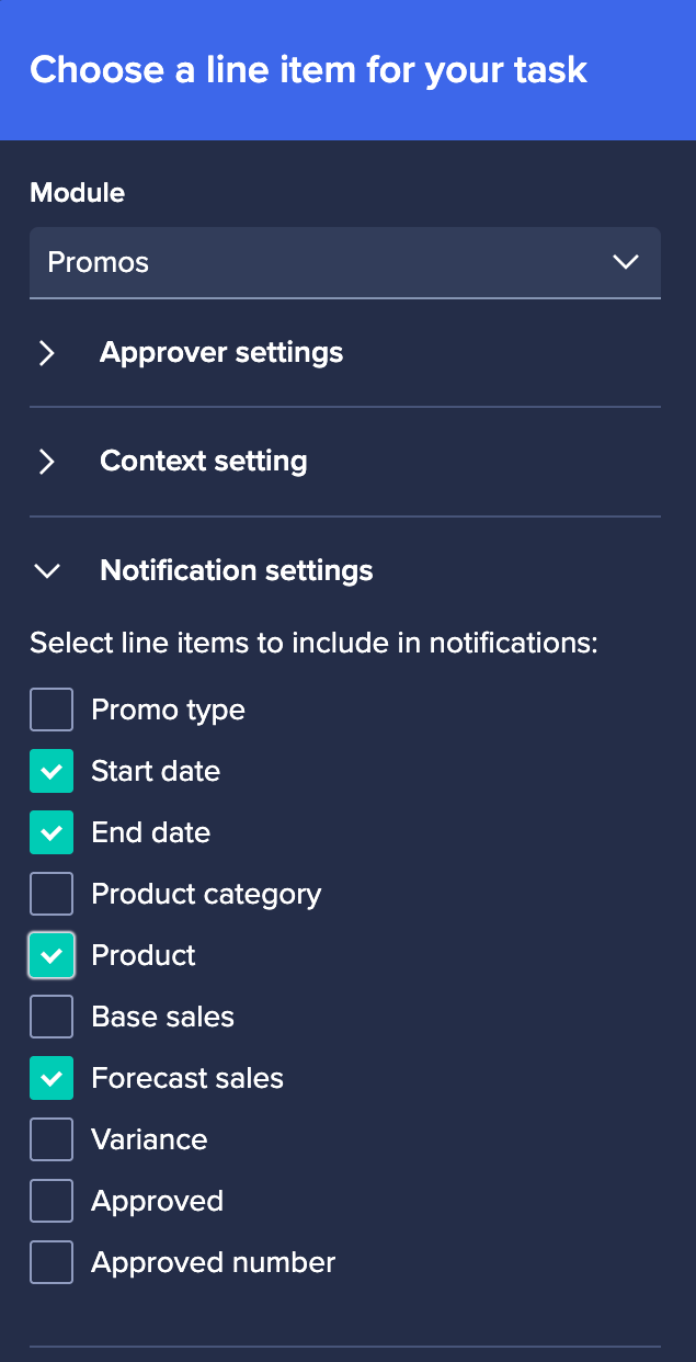 Workflow builders can now give users and approvers more context when sending task or approval notifications by including hand-picked line items and their values.