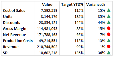 - Dual data sources: the colour and icon type have independent data sources, giving the opportunity to increase data density of your reports